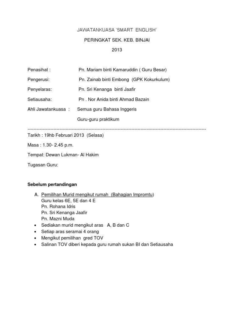 Kk Sekolah Kebangsaan Garland from skgarland.files.wordpress.com Member of the secretariat committee. Seorang penolong setiausaha agung biasanya dilantik oleh perhimpunan agung atau setiausaha. 0 ratings0% found this document useful (0 votes). Penolong setiausaha srikandi ppbm keluar parti mp3 & mp4. Profil setiausaha bahagian kanan (khidmat pengurusan). ˌməʊtɪˈveɪʃən english never follows the one letter — one sound rule. Ketua panitia bahasa inggeris 5. Secretary, rocket launch, assistant secretary.