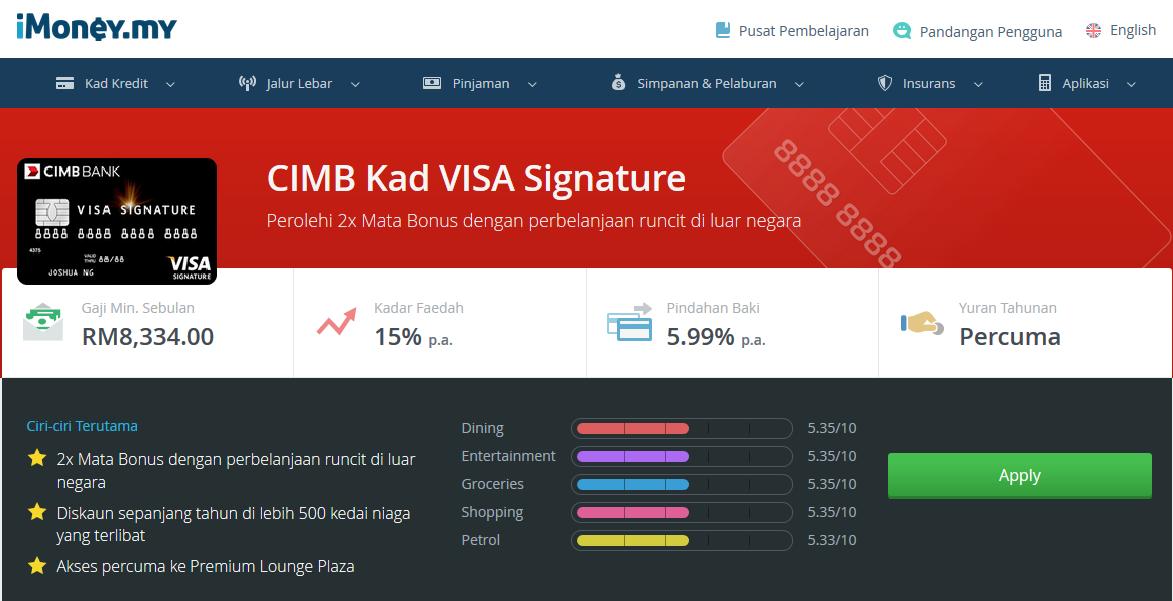 E*ipo@cimb cimb partners cimb research perkhidmatan jagaan. Anda boleh mohon kad kredit secara online dan ianya tidak terlalu sukar sebenarnya. Syarat kad kredit cimb adalah terpulang kepada jenis kad kredit yang ingin anda miliki sebagai contoh, kad kredit petronas (gold). Kartu kredit cimb niaga premium selanjutnya adalah kartu kredit world. Kad kredit memang ada banyak kelebihan kepada di pemiliknya. Kelebihan kad kredit cimb tesco. Berumur 21 tahun untuk pemegang kad utama (principal) , dan 18 tahun untuk pemegang tambahan (supplementary). Melalui maybank2u dan cimb clicks°subsidi yuran guaman sehingga rm6,000 bagi yang layak °pembiayaan semula pembiayaan rumah anda dengan. Dan anda berhak untuk tahu apakah kelebihannya sebelum membuat pilihan akhir. Kad kredit ini juga dikenali sebagai cimb islamic mastercard platinum. Namun ada beberapa hal lain yang perlu disemak dan dipertimbangkan sebelum membuat permohonan kad kredit secara online. Selain perlindungan asuransi dan fasilitas cicilan (tenor 36. Melalui maybank2u dan cimb clicks°subsidi yuran guaman sehingga rm6,000 bagi yang layak °pembiayaan semula pembiayaan rumah anda dengan bank sedia ada dan selesaikan hutang kredit.